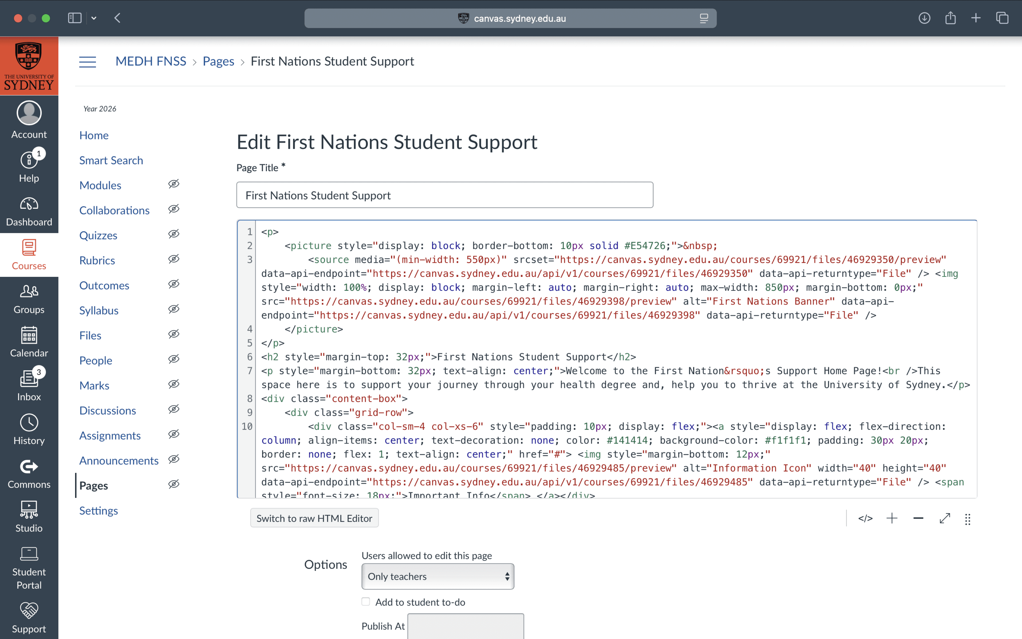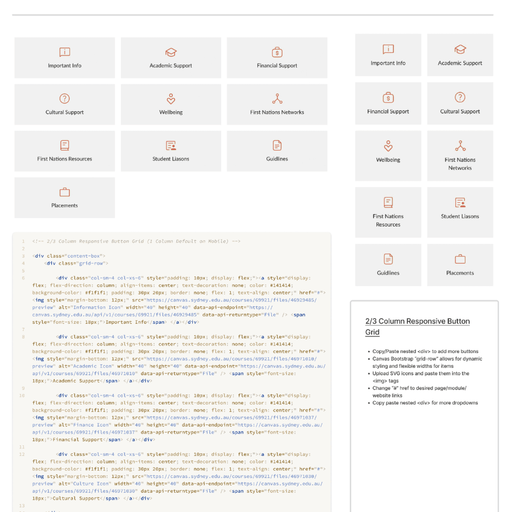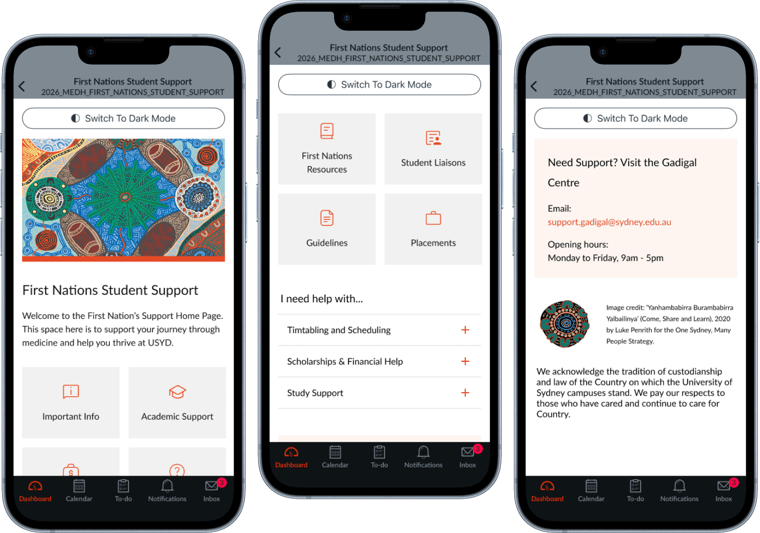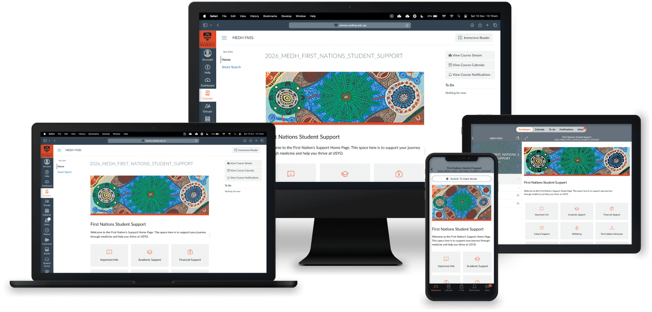 This project involved previously a conducted yarning session with First Nations students across health sciences at the University of Sydney and a resource they suggested was a tailored Canvas page that provides all information needed for their studies in addition to their face to face supports at centres and through faculty student liaison academics.
