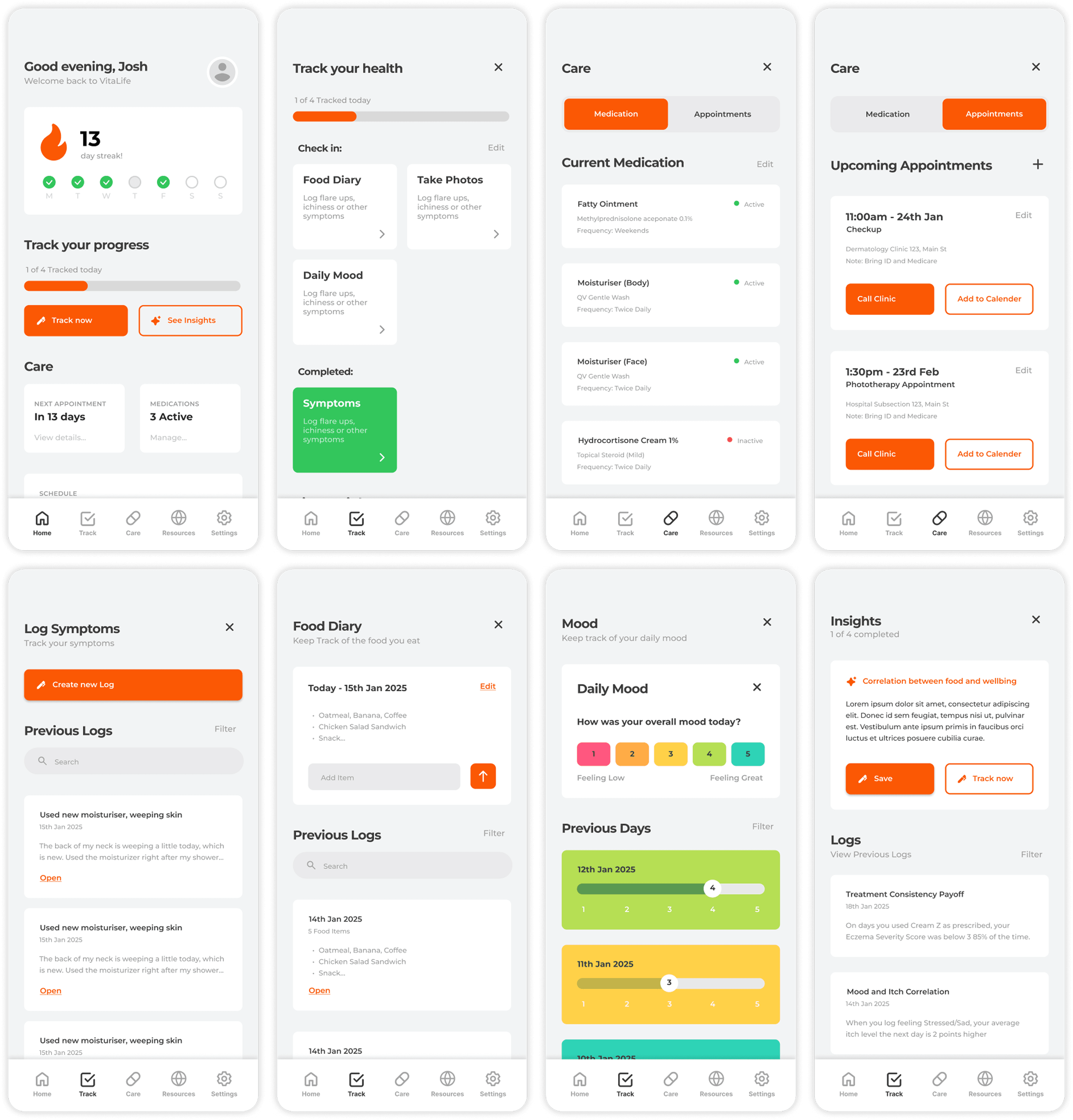 This project focuses on designing a health management app tailored primarily toward individuals with eczema, while remaining adaptable to other chronic conditions. The app aims to create a unified platform that simplifies symptom tracking, supports day to day health management and provides personalised condition specific insights.