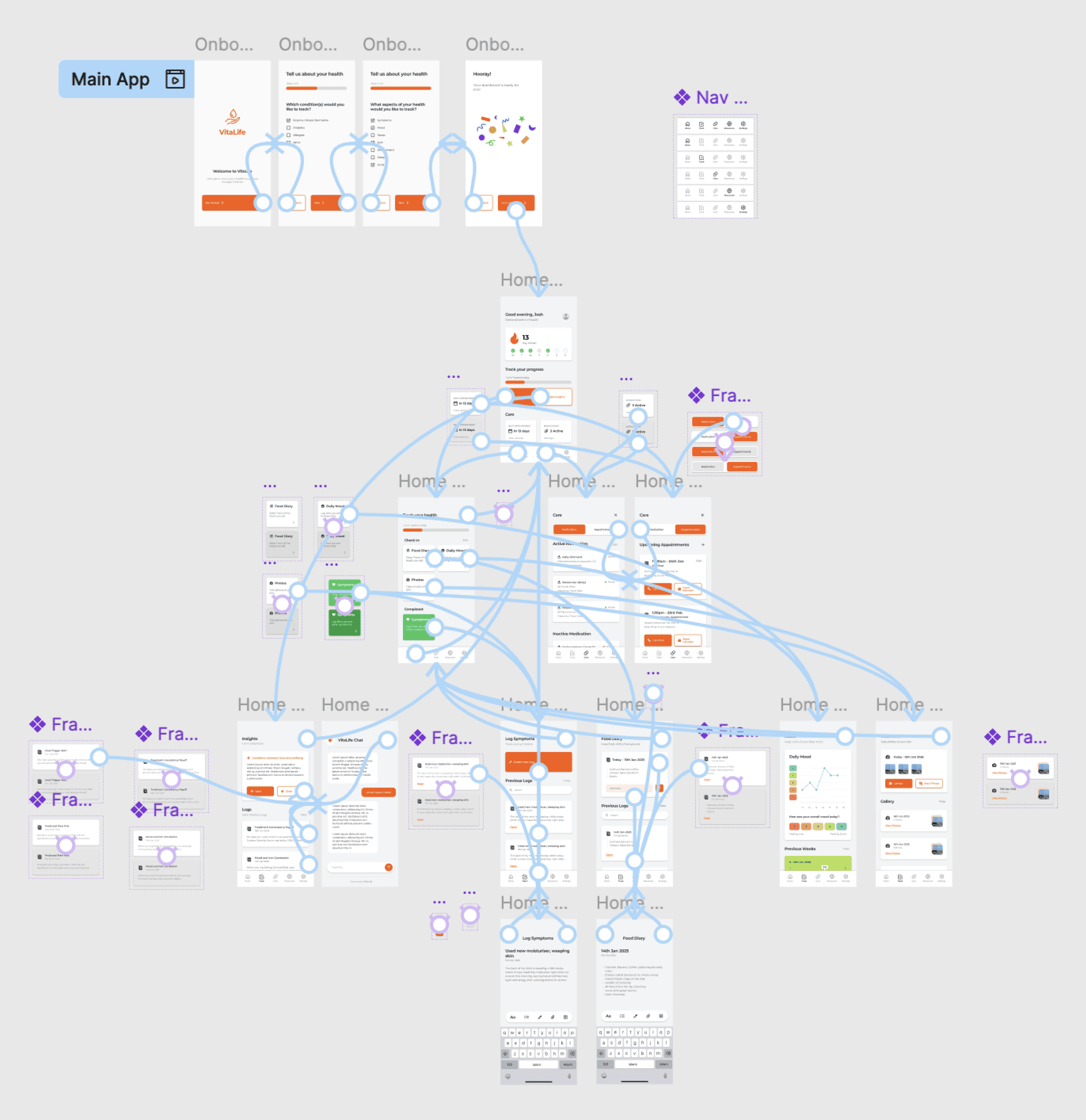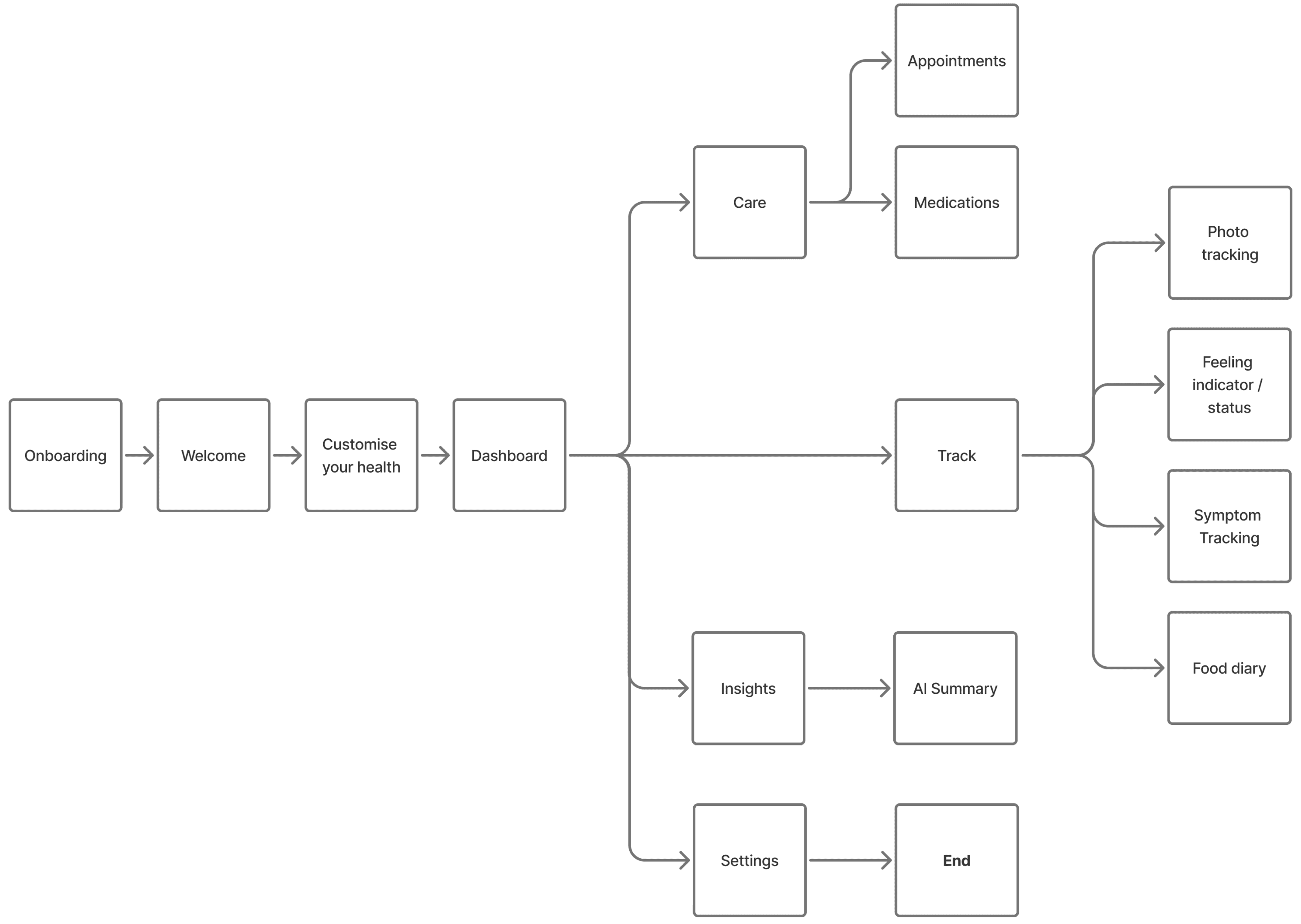 Looking back, the research phase of this project was both interesting and overwhelming. Initially my scope was extremely broad by trying to understand chronic conditions in general, but I quickly realised that narrowing my focus to a specific condition allowed me to go much deeper. More ethnographic research would have helped me uncover the subtle challenges users face day to day and connecting my insights more tightly to the design decisions could have made the concept even stronger.